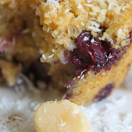ReplyDeleteI love blueberry muffins, and can only imagine the extra burst of flavor from the coconut and macadamias :) These look like a delicious fancied up muffin! Can I have one for breakfast tomorrow please? :)